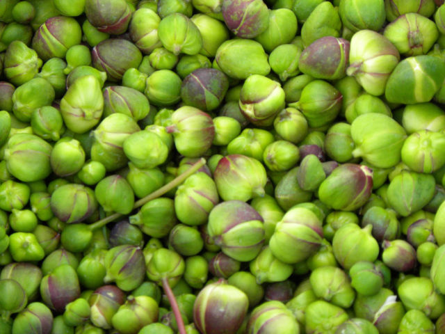 After collection, the roots are cleaned of dirt and dried. To do this, they are laid out in an open space, providing protection from the sun, but good ventilation. This process can take several days. Store dried roots in sealed cardboard boxes. Unopened buds wither slightly in the shade. After that, they are pickled or salted.