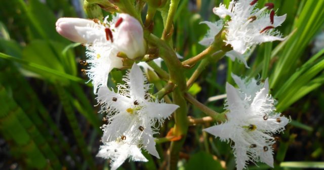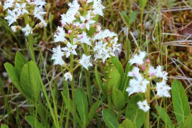The trifoliate leaves of the trifoli are located on long petioles. They are distinguished by a bright green color. The racemose inflorescences of the three-leafed watch consist of medium-sized beige and light pink flowers. The fruits of the medicinal plant are represented by capsules filled with seeds.