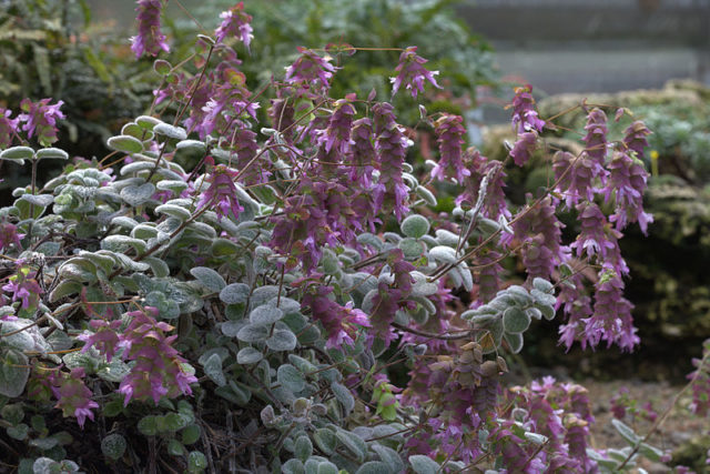 In the photo, marjoram looks like a squat shrub with thick, dense leaves of a bluish tint. The flowers are unusual, large and hanging, light pink or purple. It has pronounced citrus notes, therefore, this seasoning is mainly added to tea.