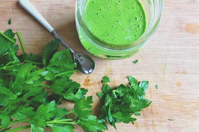 Parsley juice relieves inflammation and promotes the removal of salts from joints. For diseases of the musculoskeletal system, you can use the following cocktail: