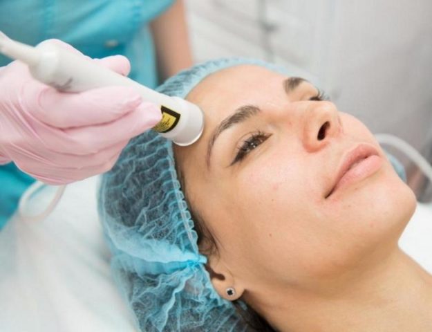 - Before the start of cosmetological manipulations, the face is thoroughly cleaned, disinfected, and superficial peeling is carried out to remove keratinized skin particles.