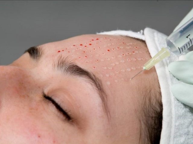 - After that, the rejuvenation procedure itself begins - with the help of a syringe with a microneedle, the cosmetologist injects precise doses of hyaluronic acid into the right places.
