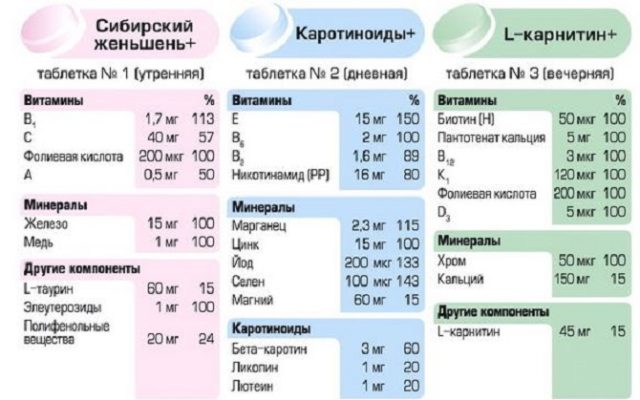 Vitamin and mineral complex Alphabet was created taking into account the recommendations of scientists, based on the characteristics of the intake of various useful substances. One capsule can contain all vitamins and minerals, but their absorption suffers when taken simultaneously. In this regard, a three-time vitamin therapy regimen wins. This separation procedure eliminates all undesirable interactions of active components, minimizes the risks of allergic reactions.