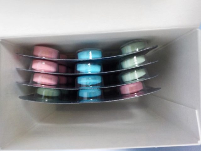 The third tablet has a green tint. It contains iodine, copper, iron, vitamins B, PP, molybdenum. This is the evening portion for dinner.