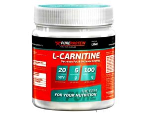 - Pure Protein L-Carnitine. Each package contains 100 g of powder. The advantage of the drug is the absence of preservatives, good concentration, and affordable price. The remedy is recommended to be taken 1 hour before the start of physical activity.