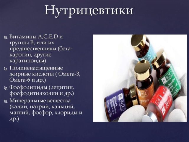 - Nutraceuticals... They are prescribed for a deficiency of essential substances. It happens that these components are not synthesized by the body. But you can get them from the external environment.