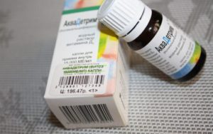 The peculiarity of vitamin D is that its absorption occurs only after contact with bile, the production of which is impaired in people with digestive system problems, and those who are on a diet excluding fatty foods. For them, the drug is sold in aqueous form, which is easier to digest. In our country, the agent can be purchased under the trade name AquaDetrim, 1 drop of the medication contains 500 IU, these data are provided for ease of dosing.