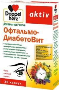 - Doppelherz asset OphthalmoDiabetoVit has significant differences from classic vitamins. It is a specially designed vision complex for diabetics. Vitamins contain zeaxanthin and lutein, which are essential for vision. They reduce the oxygen demand of the optic nerve, synthesize pigments. Vitamin A enhances the antioxidant effect provided by tocopherol, and also participates in the restoration of the visual analyzer and prevents retinopathy. But there is one peculiarity. These are not water-soluble, but fat-soluble vitamins, and they stay in the body longer. Therefore, such a complex is not prescribed for more than a month or two, since there is a risk of accumulation of vitamin A in toxic quantities.
