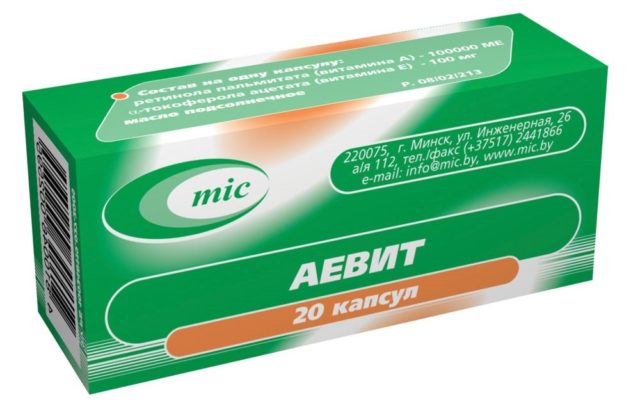 To eliminate acne, the addition of the contents of Aevit capsules to creams, tonics, lotions and other cosmetics is shown. The duration of use is 2 months.