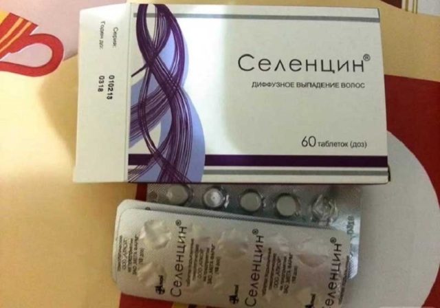 - Selencin - a drug in the form of tablets, designed to reduce the number of curls falling out. Activates dormant bulbs, prevents hair damage and promotes hair growth.