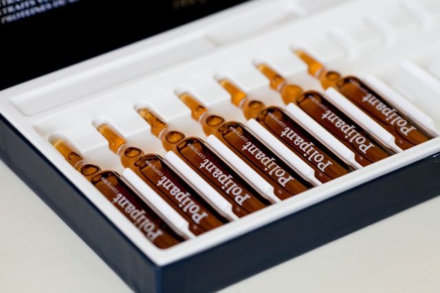 - Polypant - vitamins for strengthening hair in ampoules, which have a positive complex effect on the "dormant" bulbs. The tool improves hair growth, and also penetrates the structure, rejuvenating the curls from the inside.