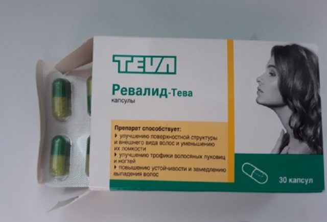 - Revalid - the drug is produced in a gelatin capsule, the action is due to the multicomponent composition, which also includes the amino acids, which are irreplaceable in value, cystine and methionine. These vitamins have a complex effect to strengthen the hair roots, as well as restore the structure of damaged strands and prevent hair loss.