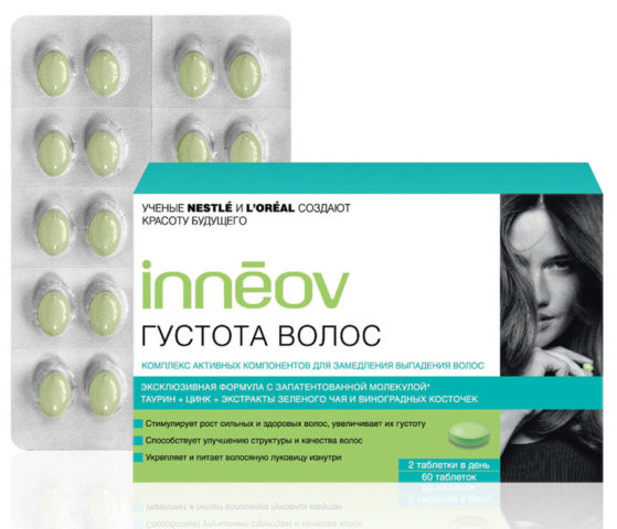 The food supplement contains natural plant extracts, vitamins and minerals. It is taken 2 tablets a day. As a result, hair becomes thicker and stronger. The cross section of the tips and increased fragility disappear.