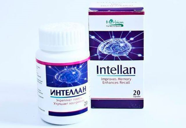 - Intellan... The supplement contains plant extracts, flavonoids, vitamins and amino acids that help improve blood circulation in the brain tissues. The remedy is also indicated for depressive conditions. During treatment, stool disorders, allergic reactions may occur.