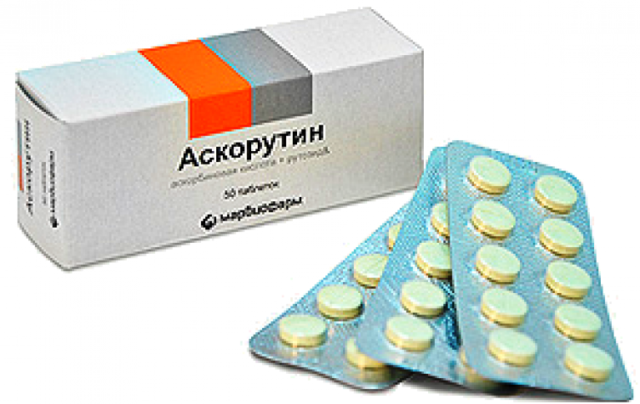 - Ascorutin... The supplement contains ascorbic acid and vitamin R. Their combination is able to strengthen the vascular walls and restore oxidative processes.