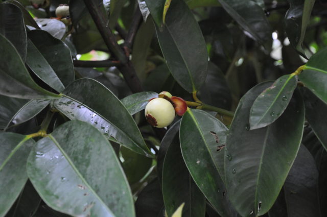The islands of Indonesia are considered the birthplace of the mangosteen. Over time, the fruit began to be grown in Hawaii, Colombia, South America, India, Thailand and Puerto Rico. The height of the tree ranges from 6 to 26 m. It has spreading branches with oblong leaves. At first, they have a pale pink hue, and over time they turn green. Trees grow on special plantations. They do not require insect pollination.