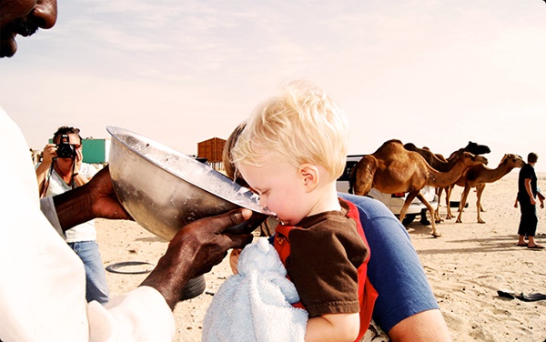 In many countries, only men do this. In order for the she-camel to agree to milking, the camel must be allowed to approach her. Often this is the only way to drain milk into a bucket. Naturally, a hungry and impatient "child" will interfere with the laborious process, pushing all the time under the arm with his muzzle and pushing the milker away from the mother's udder.