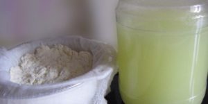 - 100 ml of the product is mixed with a large spoonful of wheat flour;