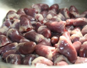 - Thoroughly wash chicken hearts, clean them of blood vessels and fat.