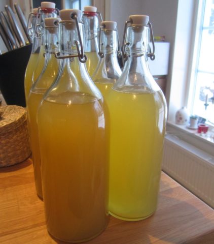- After removing from heat, the liquid is cooled. Yeast is added to it, after which the drink is poured into a bottle. It is placed under a water seal for 4 weeks.