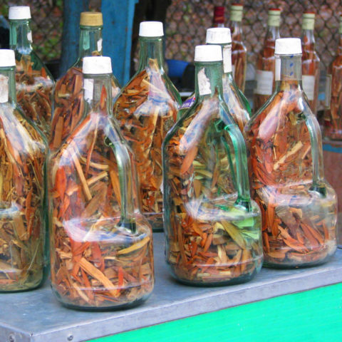 Wood chips, bark, roots and leaves of plants, mixed with each other, occupy an important place in the recipes for the preparation of the tincture. The composition of the drink options may vary, it contains cloves and anise, lime and basil, ginger and agave. In addition to the well-known herbs and fruits, the product contains several local endemic plants. The basis for the preparation of alcoholic recipes is traditionally honey, rum or wine.