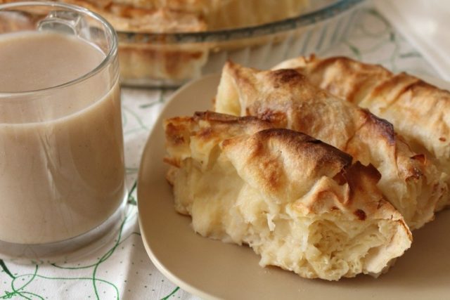 In Bulgaria, it is customary to eat buza with a hot banitsa - a flat cake made from puff pastry with the addition of feta cheese.