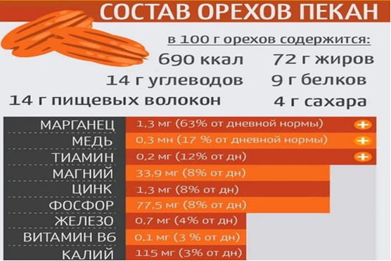 Pregnant women should appreciate the benefits of pecans. Folic acid in the composition helps the baby to develop and grow properly. Vitamin C makes the body stronger and more resistant to colds. Vitamin E has a positive effect on the condition of the skin, this is especially important during the period of bearing a child, since expectant mothers often face stretch marks.