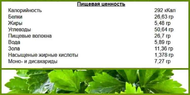 - 1 Calorie content and chemical composition of parsley