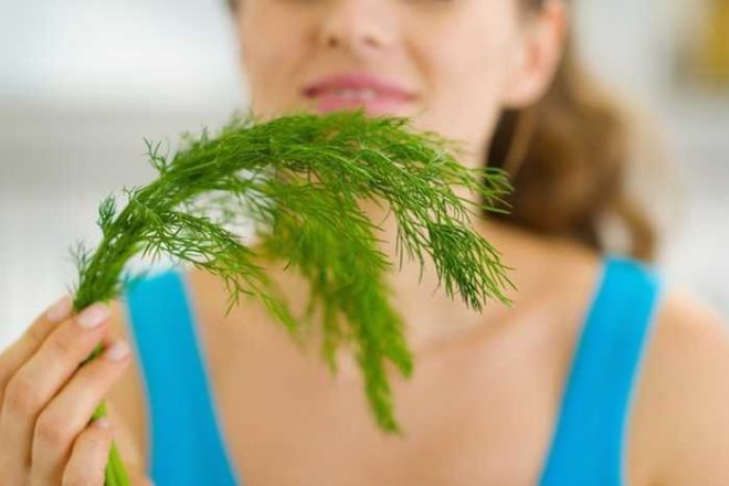 Also, dill is good for a woman's health in that it helps to maintain youth longer. The properties of the plant not only improve the condition of the skin and hair, but also affect the reproductive ability. With the regular use of greens, the risk of developing infertility is reduced, but the likelihood that fertility will persist until old age increases.