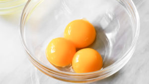 - mix 1 yolk with 1 large spoonful of cottage cheese and 2 teaspoons of vegetable oil;