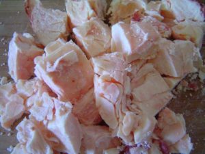 - cut fat into small pieces with removal of films, veins of meat, cartilage;