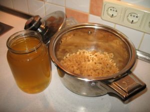 - strain the resulting mass using gauze or a sieve, and pour into jars. Put the cooled product in the refrigerator.