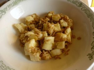 - Mix chopped dried fruits with oats, sprinkle with lemon juice, leave to infuse.