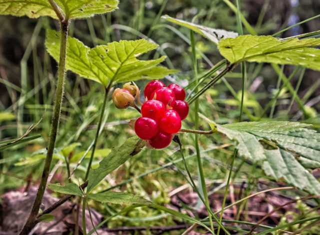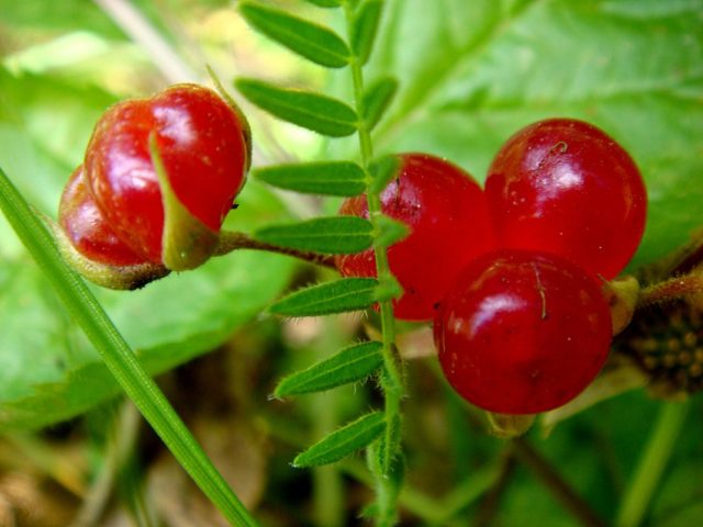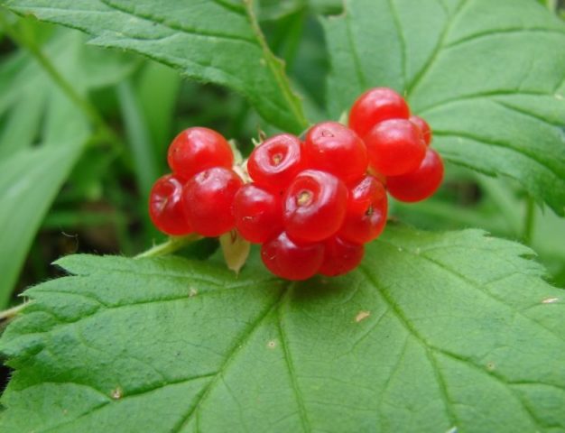 Rocky bone (Rubus saxatilis) is a perennial herb from the Pink family. It has a straight fibrous stem, trifoliate leaves, with a rough surface covered with hard hairs. The shoots of the plant twine along the ground and reach 1.5 m in length.