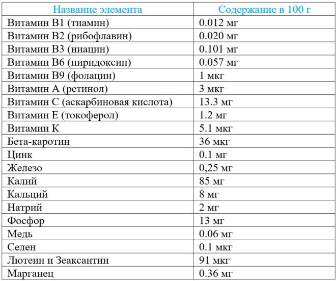 The calorie content of a healthy berry is 46 kcal or 191 kJ per 100 g of product. Cranberries are rich in vitamins and other elements. They are listed in the table below: