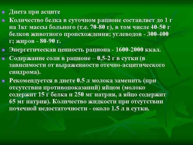 If the patient is diagnosed with dropsy, it is necessary to adhere to a strict diet for ascites.