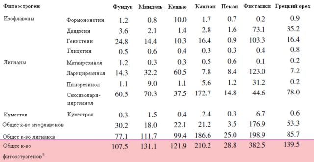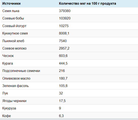 Plant substances are important for the body. The table provides information on phytoestrogen-rich foods for women: