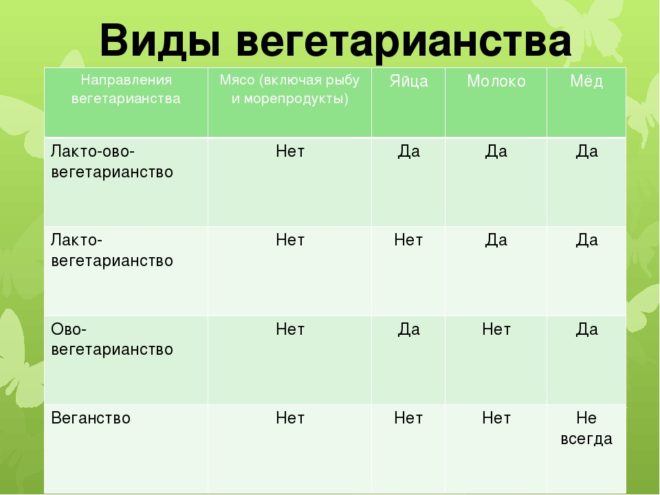 Adherents of this type of vegetarianism are of the opinion that it is necessary to consume animal proteins, as a result of which animal products are completely excluded from the menu, with the exception of eggs.