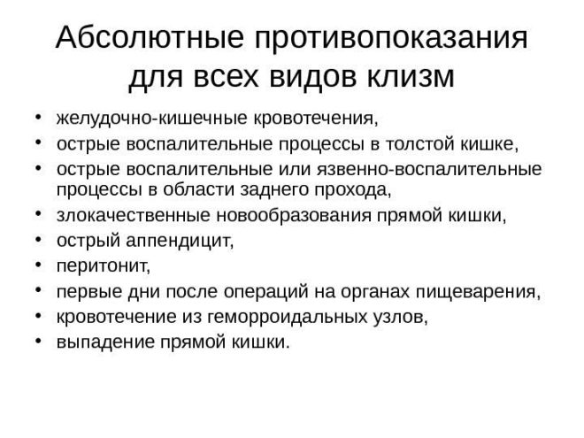 Enema can be harmful if you ignore the contraindications for its implementation. Experts call the following contraindications to the use of procedures: