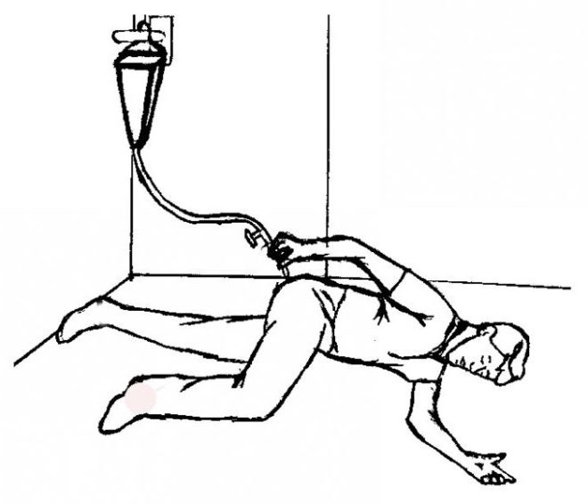 The technique is suitable for use in the bathroom. The prepared liquid is poured into Esmarch's mug, the blocked hose is fixed 1.5 meters away from you. It is recommended to lie on your side and bend your knees pulled up to your chest.