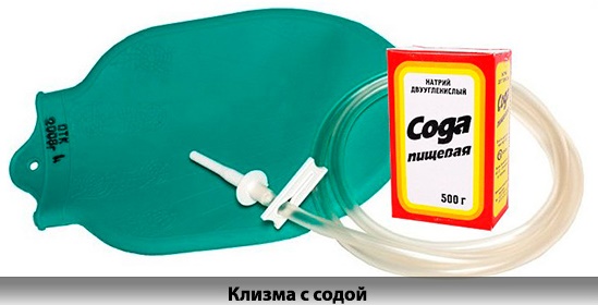 It is recommended to use soda due to its properties. Soda is useful for excessive acidity of feces. It has a calming effect, which helps to reduce pain.
