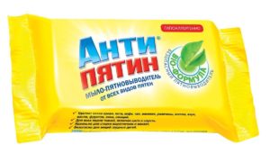 El jabón contiene bilis, glicerina, sales de sodio de ácidos grasos, hidróxido de sodio y etidranato. Ayuda a eliminar los rastros de cereza de pájaro de lino, algodón, sintéticos, seda. Pero si es necesario limpiar el material coloreado, Antipyatin puede estropear la sombra. El jabón se puede usar no solo en agua caliente, sino también en agua fría.