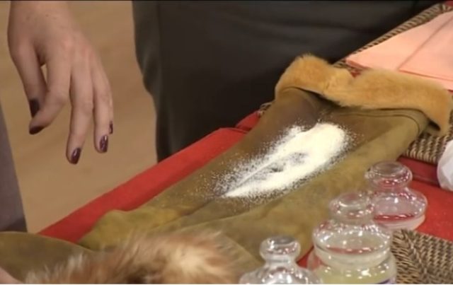 Para suciedad ligera, puede limpiar la ropa exterior con sal de mesa común. La herramienta es adecuada para abrigos de piel de oveja hechos de gamuza natural y artificial, también puede limpiar abrigos de piel de oveja con sal. Pero para la ropa con tratamiento con láser, es mejor no usar sal en polvo, las partículas abrasivas dañarán el material sensible.