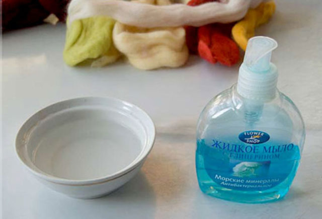Limpiar el artículo con agua es más efectivo. El procedimiento se realiza utilizando una solución jabonosa y amoniaco, champú o gasolina. En todos los casos, la limpieza en húmedo muestra buenos resultados y ayuda a eliminar incluso la suciedad más rebelde.