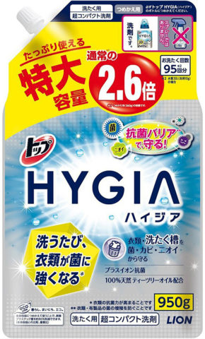 El detergente líquido Top Hygia de Japón es adecuado para productos de limpieza de cualquier color y material. La composición activa contra bacterias y microbios destruye el patógeno de la poliomielitis, elimina los olores en la bata. El detergente no contiene elementos fosfato.