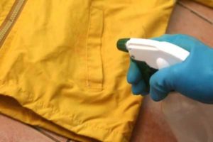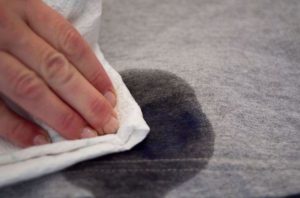 - Aplique la composición preparada a la superficie contaminada de la tela y deje todo sin cambios hasta que el producto esté completamente seco;