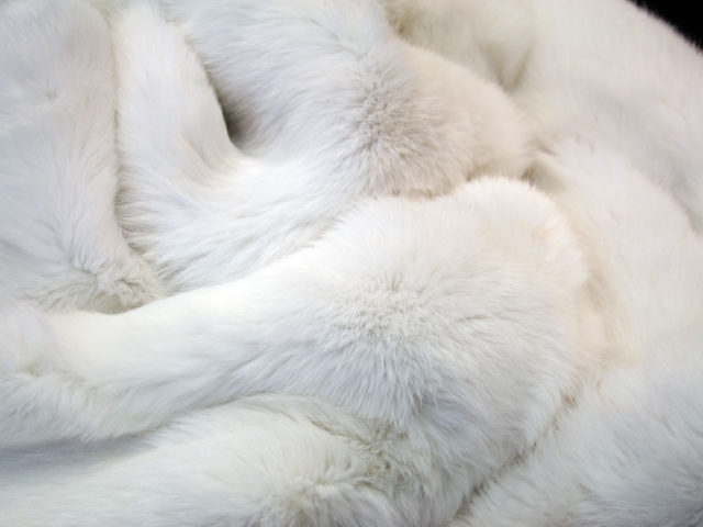 - un abrigo o cuello de piel de conejo se coloca sobre una superficie plana con la piel hacia arriba;