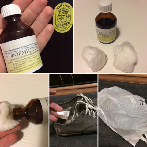 - Empape un algodón en el producto, trate el interior de las zapatillas.