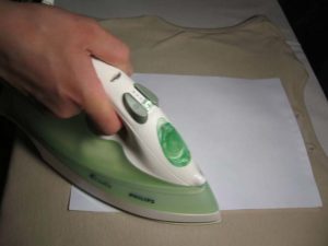 - Planche el área manchada con una plancha tibia durante 2-3 minutos.
