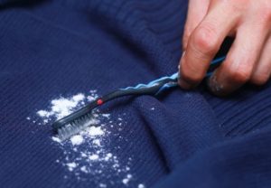 Si hay polvo de dientes en la casa, no será difícil eliminar una mancha de aceite vegetal fresco en la tela. La cosa se coloca sobre una superficie plana, se pone un paño limpio. Luego espolvoree la contaminación con polvo. Incluso puedes frotarlo ligeramente. Después de un tiempo, el polvo se volverá amarillento. Esto es evidencia de que la grasa ha comenzado a absorberse.